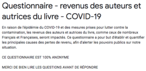 La Charte • Nos actus • Crise sanitaire – Questionnaire – revenus des auteurs et autrices du livre – COVID-19